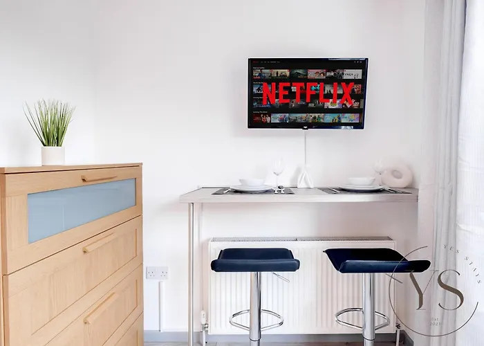 The 20 m^2 Gorgeous Studio A - Wi-Fi Alton Towers Netflix Apartment Stoke-on-Trent is located approximately 5 km from Trentham Gardens and offers Wi-Fi for either business or leisure. This 1-bedroom apartment includes an iron and ironing board, a washing machine to ensure guests have a comfortable stay.